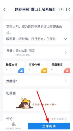 3、进入小说详情页面后,点击立即阅读按钮,进入阅读界面。