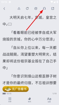 4、在阅读界面中,点击顶部的耳机图标,即可开始听书。