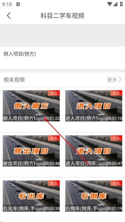 3、在科目二学习界面的考试项目详解板块下,选择想要观看的视频教程,如点击倒入项目。