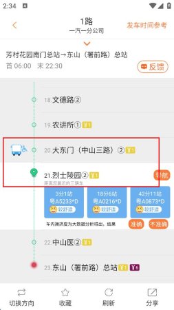 4、点击后,即可查看该公交路线的站点、发车时间等详细信息。