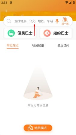 2、在公交查询页面,点击上方搜索框,进入搜索输入状态。