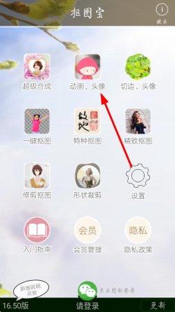 1、打开抠图宝应用,点击动画、头像进入制作界面。