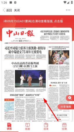 3、进入看读报纸后,选择自己感兴趣的报纸,如中山日报。