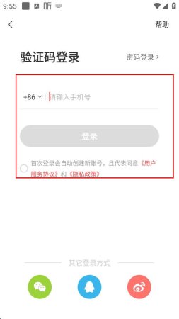 4、在登录方式选择页面,选择验证码登录,输入手机号码,获取并输入验证码,然后点击“登录”按钮,完成登录操作。