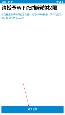 4、会弹出请授予WiFi扫描器的权限提示框,点击授予权限按钮,为应用授予位置权限。