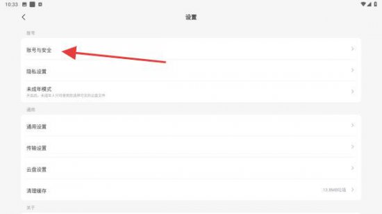 3、进入设置的界面内,点击账号与安全的功能按钮。