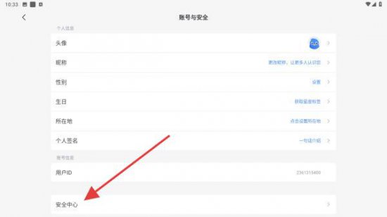 4、在账号与安全的页面内,找到并点击安全中心的功能。