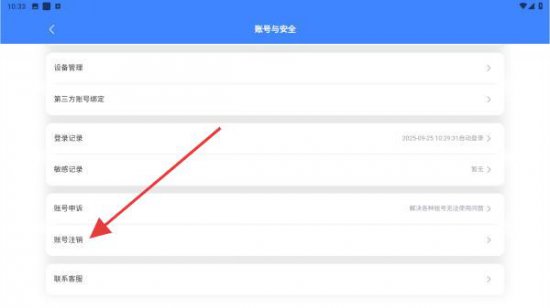 5、在账号与安全的界面内,向下滑动找到账号注销并点击即可。