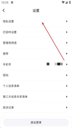 3、在设置页面中,点击隐私设置。