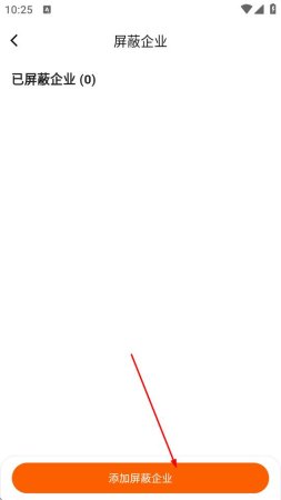 5、在屏蔽企业页面,点击添加屏蔽企业按钮。