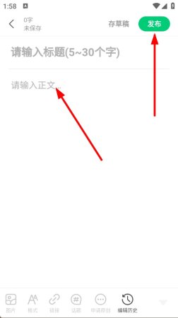 3、在发帖编辑页面,输入帖子标题和正文内容,点击发布按钮,即可成功发布帖子。