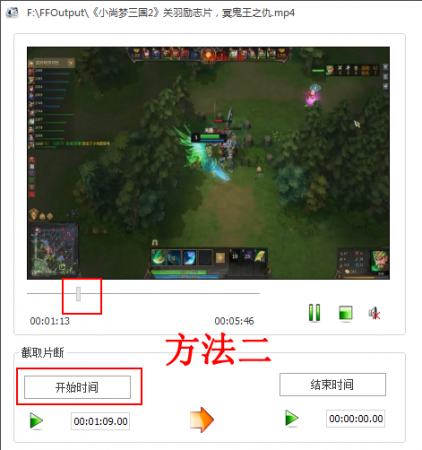 4.你可以通过两种方式来剪辑视频,方法一:如下图所示,在界面下方有开始时间和结束时间两个选项,我们可以自行填写好开始时间和结束时间,填写完成后就可以进行剪辑了。方法二:点击时间轴选需要剪辑的位置,然后点击【开始时间】选择好开始时间,再点击时间轴选好结束时间点击【结束时间】,然后剪辑位置就选好了, 最后点击确定。