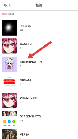 2、在弹出的相簿选择界面中,需要点击存储目标照片的相册。