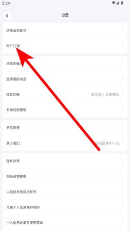 3、在设置界面里,点击账户注销选项,进入账户注销页面。