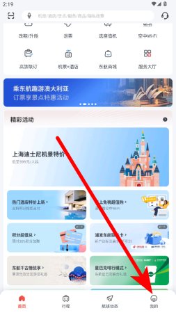 1、打开东方航空APP,点击底部导航栏的我的选项,进入个人页面。