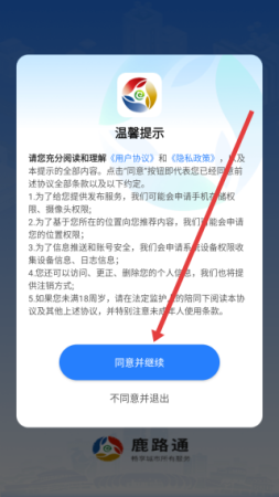 1、在打开app后,可通过点击弹窗中的同意并继续按钮,进入使用。