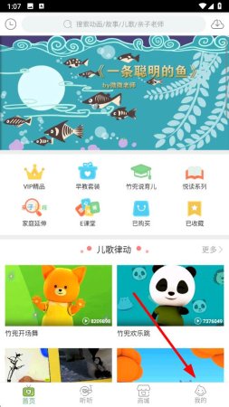 1、打开竹兜育儿app,点击底部导航栏最右侧我的图标,进入个人相关界面。