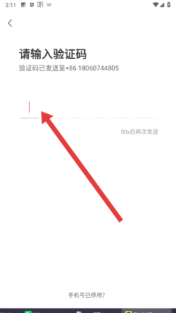 4、在获取到短信验证码后,点击输入框输入即可完成登录。