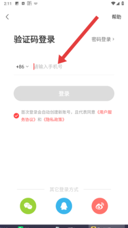 3、可以在登录页面中的输入框填写手机号,以便获取验证码进行登录。