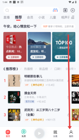 4.囊括逻辑思维、百家讲坛、流行音乐、袁腾飞、历史小说、东吴相对论、搞笑脱口秀、内涵段子、爆笑相声、K歌唱吧、评书、小说阅读、历史、有声小说、精选自媒体节目、学英语、穿越文学、鬼故事、玄幻小说、摇滚爵士、财经、传记、新闻、财经、传记、言情小说等TOP节目。