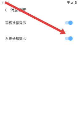 3、在消息设置的页面内,我们需要点击系统通知提示右侧开关,开启后会显示蓝色。