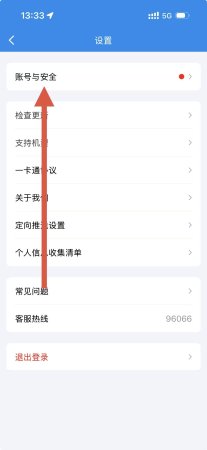 3、在设置页面里,点击账号与安全选项,进入账号与安全界面。