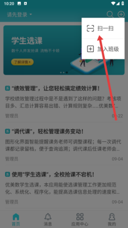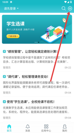 2、在进入到应用首页中,可点击右上角的加号按钮,查看更多功能。