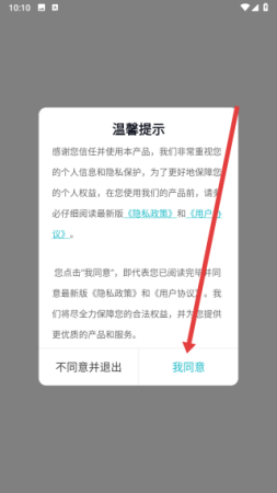 1、在打开app后,通过点击弹窗中的我同意按钮进入使用。