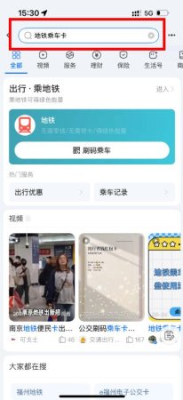 3、在搜索栏输入,地铁乘车卡点击进入。