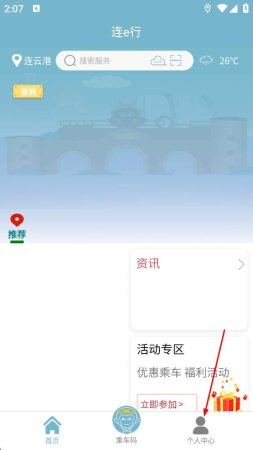 2、在连e行主界面,找到底部的“个人中心”选项,点击该选项,进入个人中心页面。