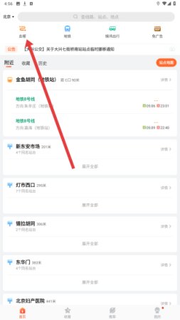 1、在公交应用首页点击顶部去哪标签,切换至目的地规划界面,准备设置出行的路线。