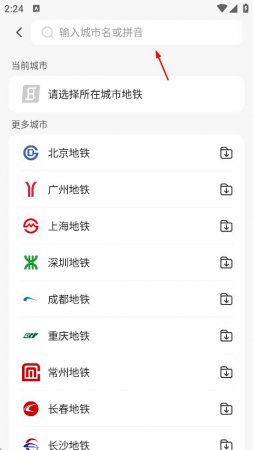 1、打开地铁软件,在顶部搜索栏输入“北京”,或者在下方“更多城市”列表中找到“北京地铁”并点击,进入北京地铁相关页面。