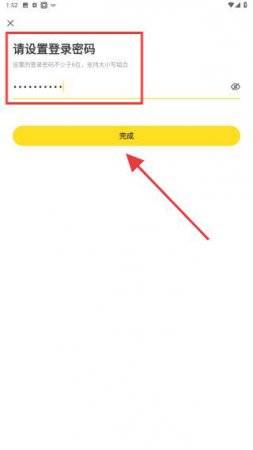 3、进入密码设置页面,按提示设置至少6位、包含大小写字母的登录密码,确认密码后点击完成,即可完成密码设置。