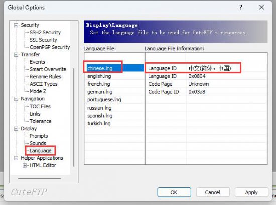 cuteftp设置中文教程