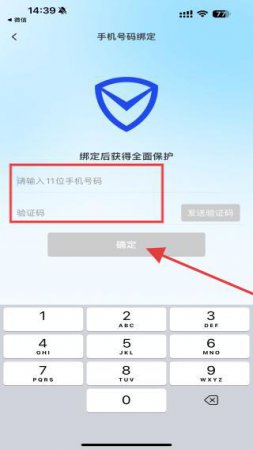 4、在手机号码绑定的界面内,输入要绑定的手机号、验证码,再点击确定的按钮即可。