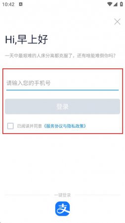 3、进入登录页面后,输入手机号码,然后勾选“已阅读并同意《服务协议与隐私政策》”。