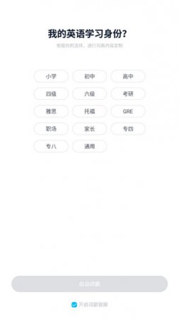 1、在本站下载并安装金山词霸最新手机版2023软件后,首先需要根据个人学习需求选择相应的学习身份。