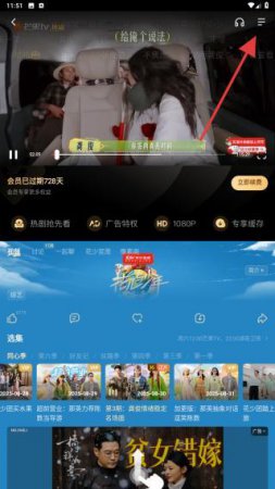 2、在视频播放页面右上角,用户需点击三个横线的功能按钮。