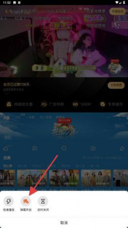 3、在底部弹出的控制栏中,点击弹幕开启的图标,即可开启弹幕。