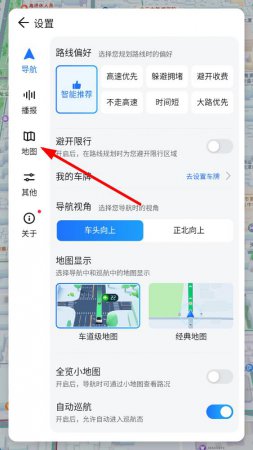 2、在设置页面的左侧菜单栏中,点击地图选项,进入地图相关设置界面。