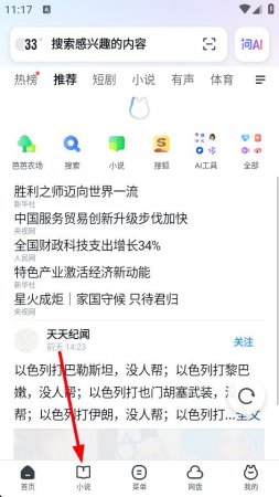 1、打开uc浏览器,点击下方小说图标进入小说频道。