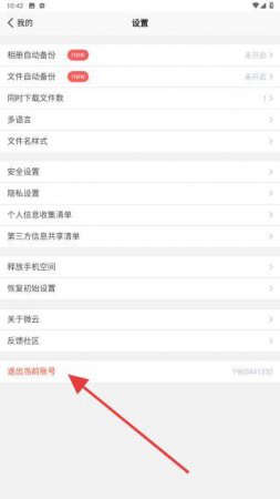 3、在设置页面滑动至最底部,点击退出当前账号的按钮。