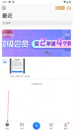 在微云APP的最近列表中,可以直观查看最近上传到微云的文件。