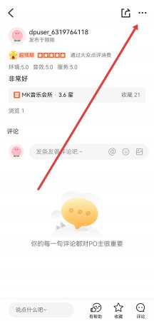 2、点击这个点评进入我们之前评论的详情页,然后点击页面右上角的···按钮,展开操作菜单。