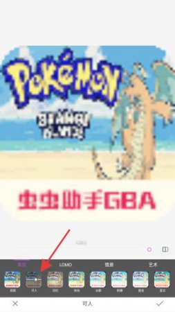 3、图片导入后,底部会显示美化分类标签,如可人、LOMO、背景、艺术等,左右滑动可切换分类。