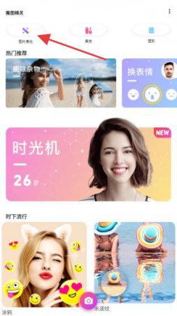 1、打开魔图App,用户需在首页顶部点击图片美化的选项。