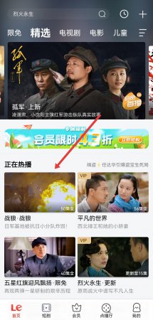 1、打开乐视视频APP,在首页正在热播等板块中,点击想要投屏的视频,进入视频播放页面。