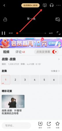 2、在视频播放页面的右上角,点击投屏TV图标,进入投屏设备搜索的界面。